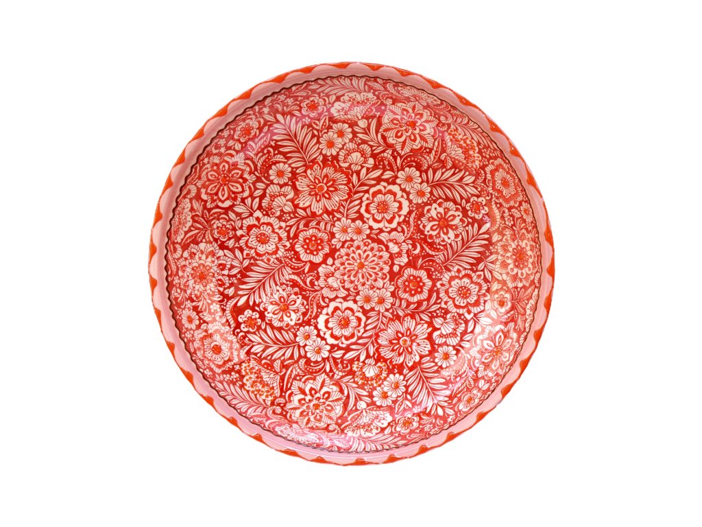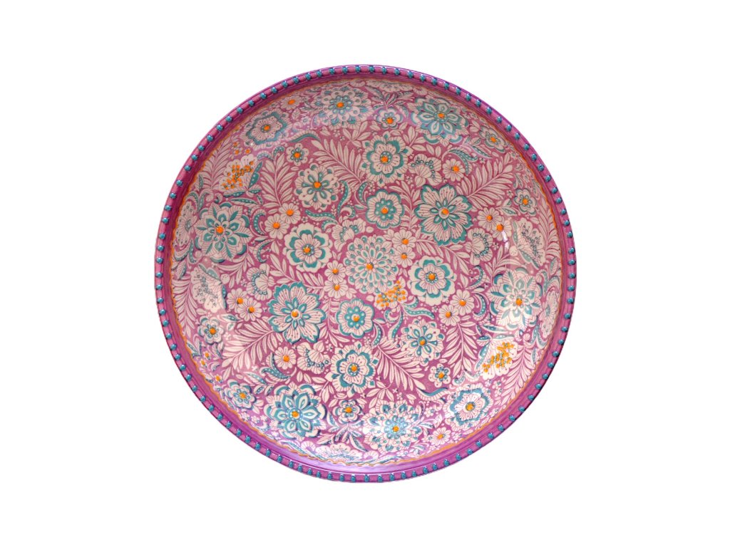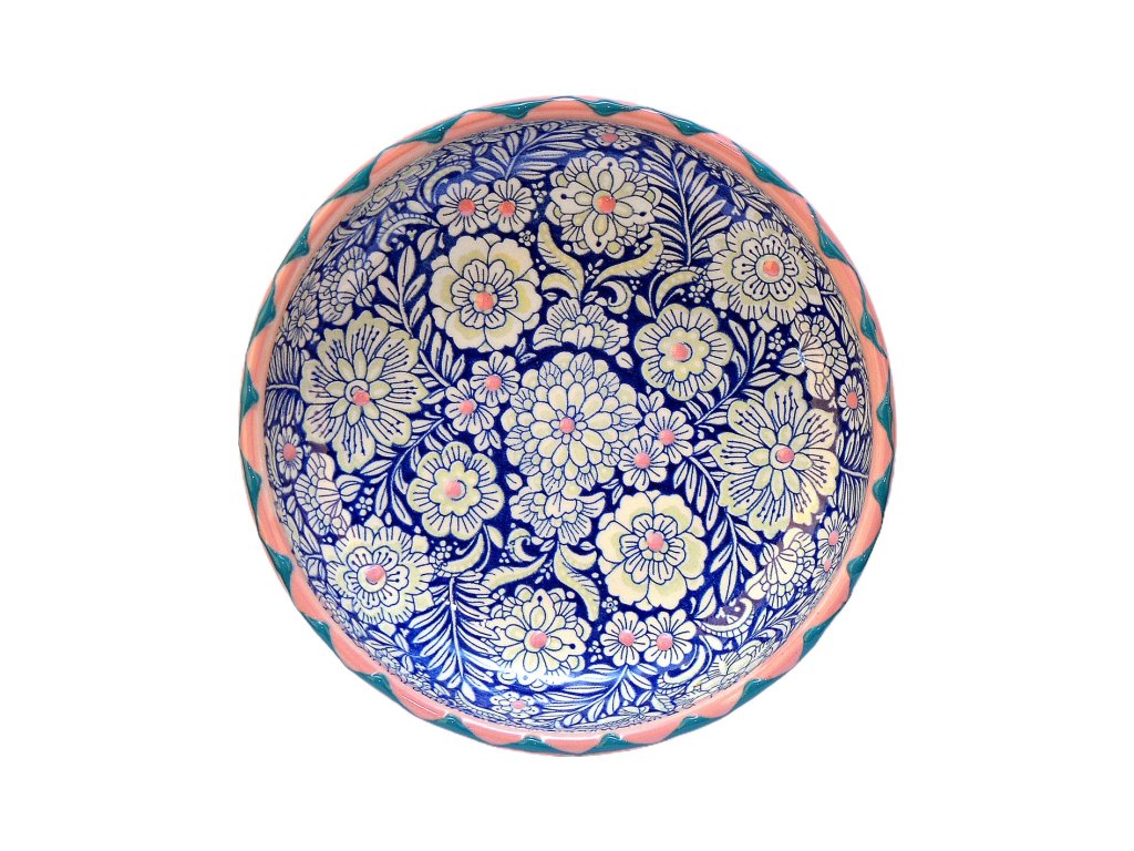 Velká ručně vyráběná mísa ze španělské keramiky s jemným pastelovým květinovým vzorem. Ideální pro servírování salátů, příloh, pečiva, ovoce i jako dekorace.