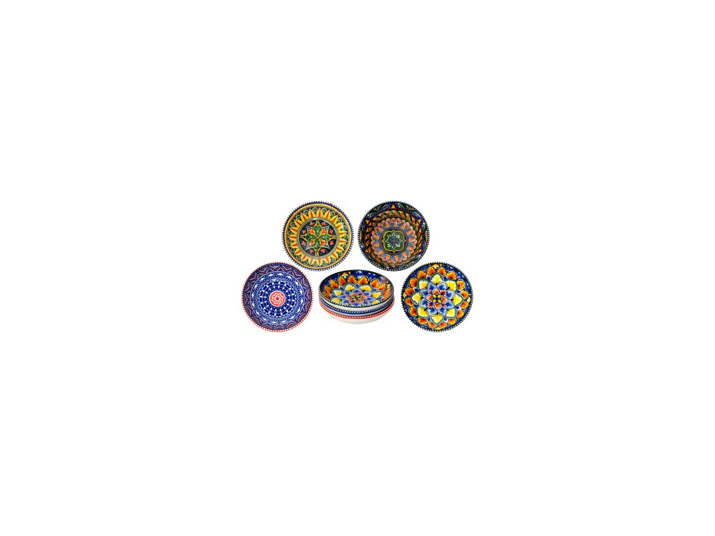 Tato výrazná miska z kolekce Sicilia odráží temperament Středomoří. Každý kus je originální ručně vyráběná keramika, zdobená ručně malovanými ornamenty inspirovanými sicilskou kulturou. Díky průměru 11 cm se skvěle hodí k servírování oliv, dipů, omáček nebo tapas. Tradiční keramika ze Španělska v těchto barvách rozzáří každý stůl a přinese atmosféru dovolené na jihu.