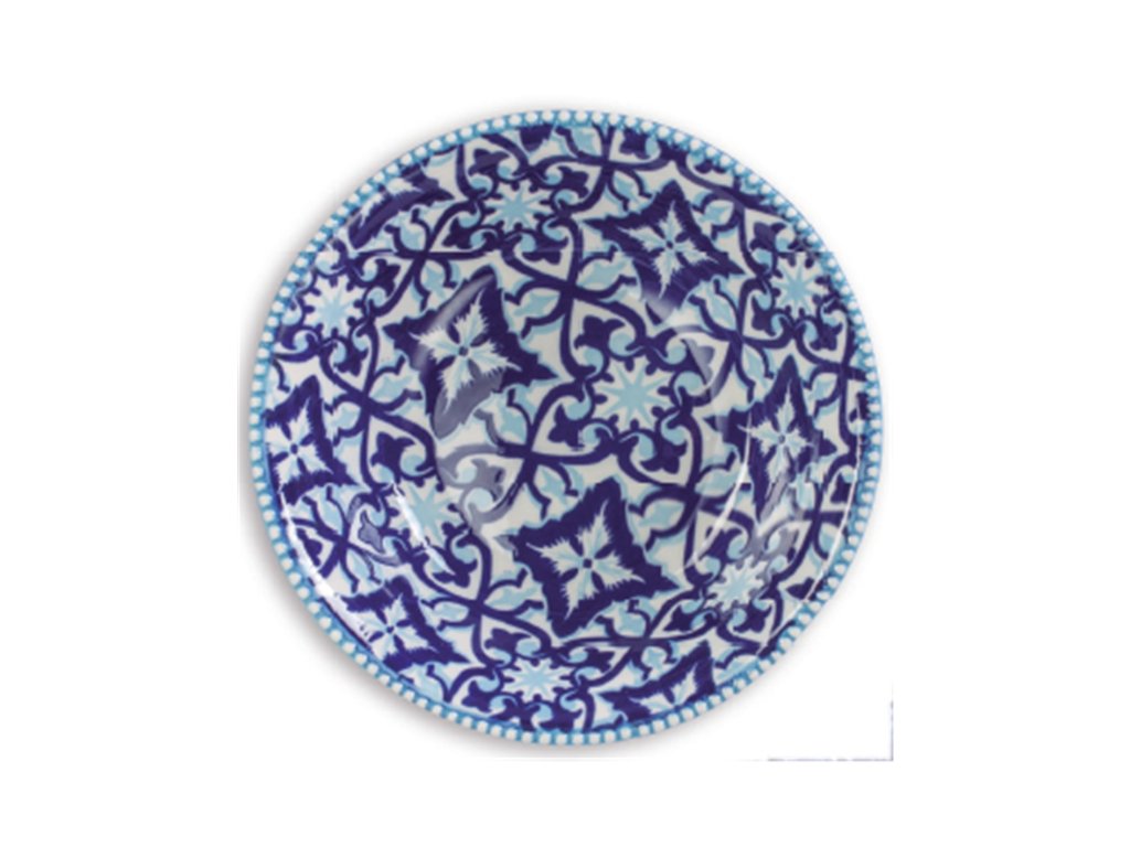 Tato střední miska z kolekce Gres Azul je dokonalou ukázkou, jak vypadá středomořská keramika ve své nejrafinovanější podobě. Každý kus je ručně vyráběná keramika zdobená jemnými vzory v odstínech modré, bílé a šedé.