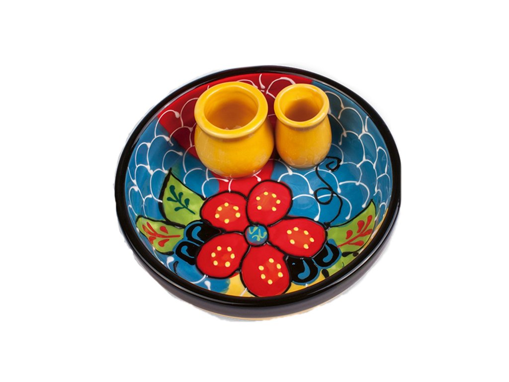 Každý kus je originální středomořská keramika, zdobená sytými odstíny modré, červené, zelené i žluté - oživý každý stůl a přinese atmosféru dovolené na jihu.Kolekce se vyznačuje plastickým reliéfním povrchem s vystouplými ornamenty, které dodávají keramice výraznou texturu a řemeslný charakter.