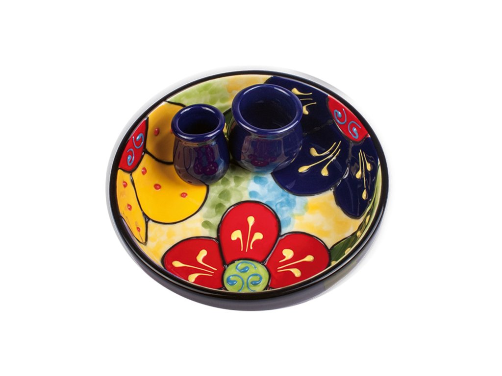 Speciální miska na olivy z kolekce Fusion - španělská keramika s veselým ručně malovaným dekorem. Díky oddělené části na párátka a pecky je ideální na olivy.