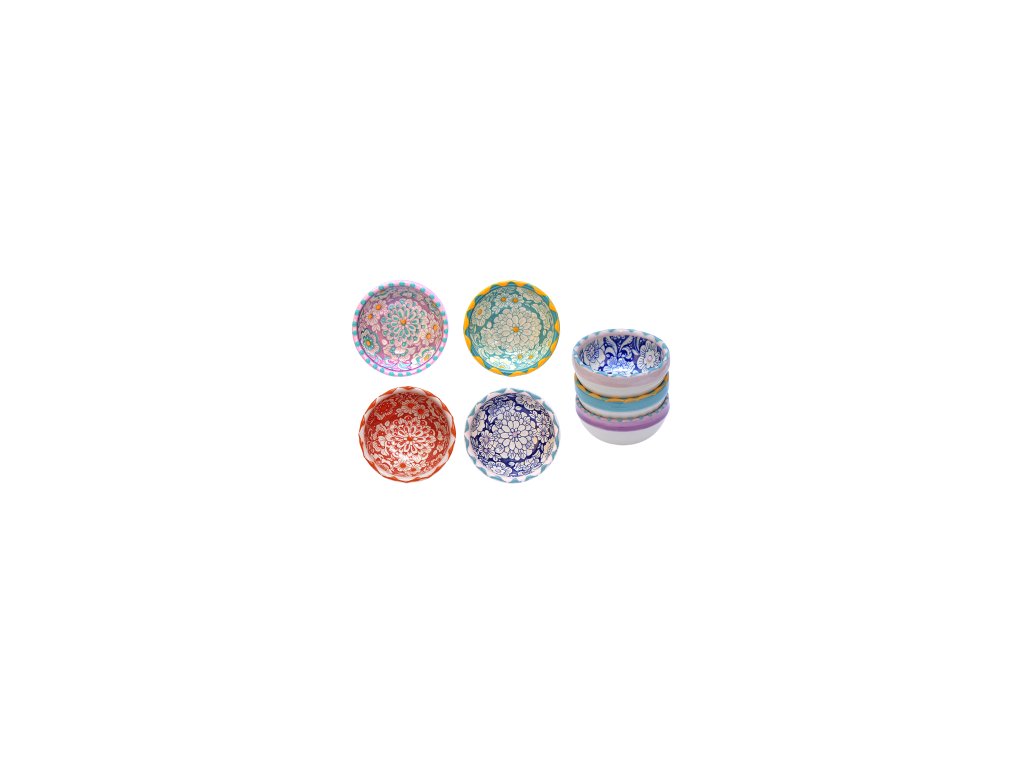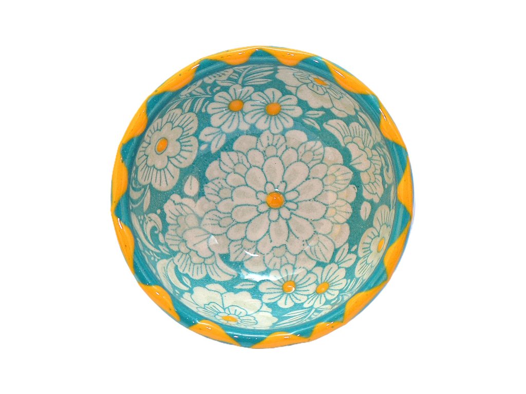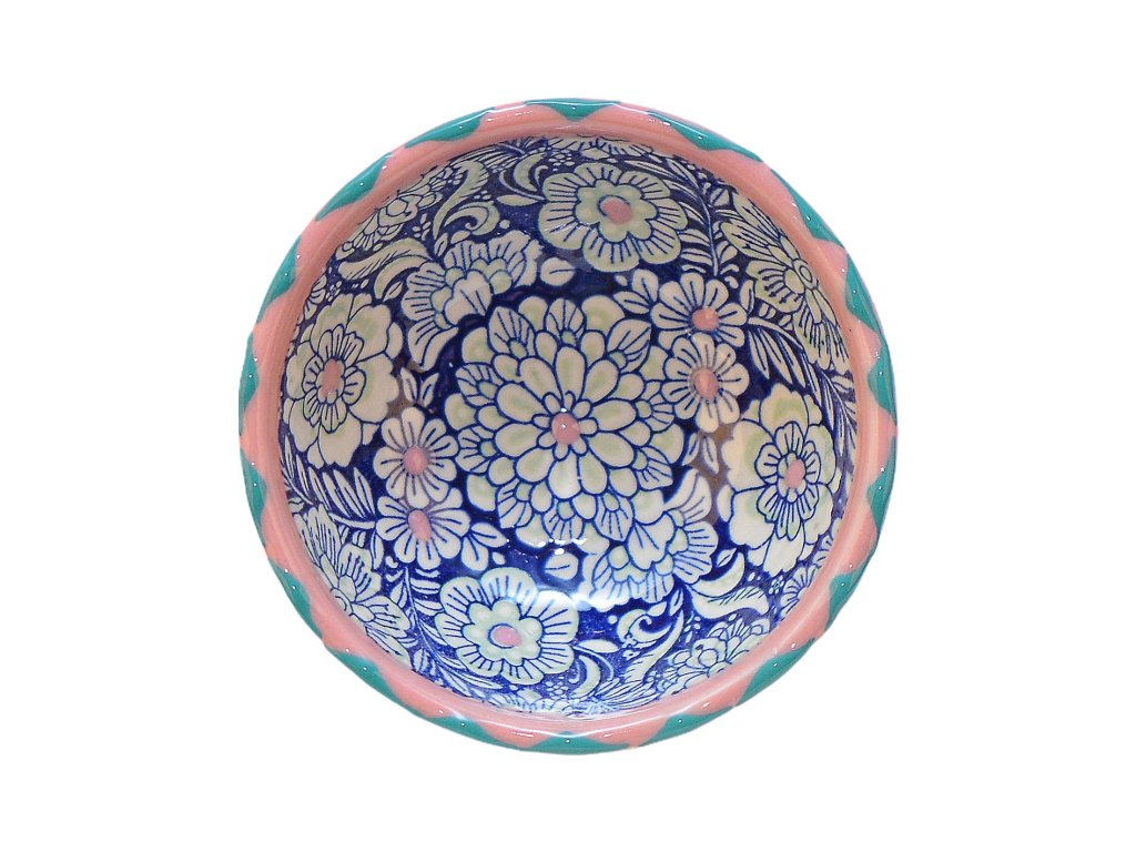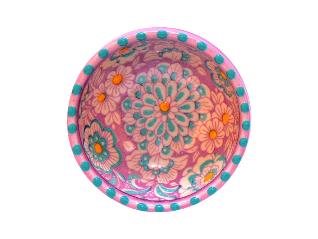 Kolekce Flowers Pastel představuje to nejlepší ze španělské keramiky – originální ručně vyráběná keramika v jemných pastelových odstínech s květinovým dekorem. Tato miska o průměru 7 cm je dokonalým spojením tradice a elegance. Skvěle se hodí jako keramické nádobí ze Španělska pro servírování, dekoraci i každodenní použití v kuchyni. Ideální miska na olivy nebo miska na dip.