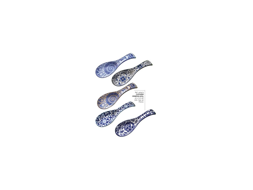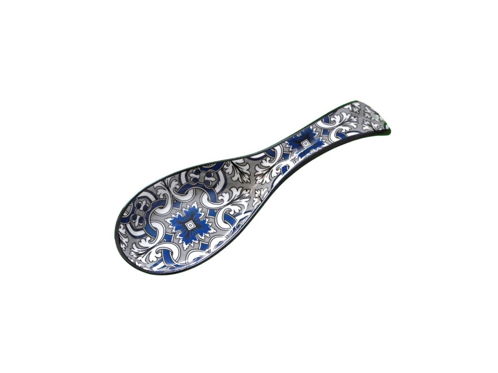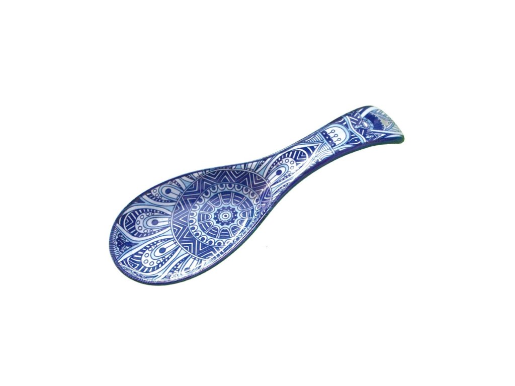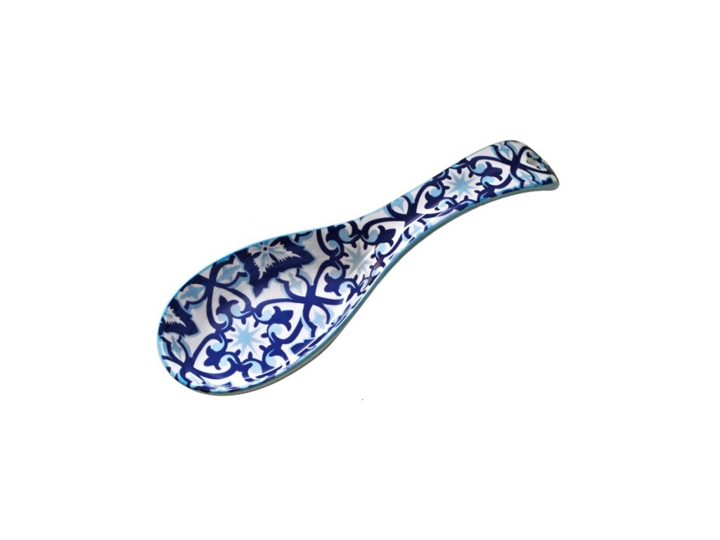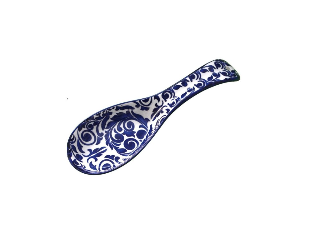 Dekorativní odkládací lžíce ze španělské keramiky s ručně malovaným modrým dekorem. Vhodná pro odkládání vařeček a dalšího kuchyňského náčiní.