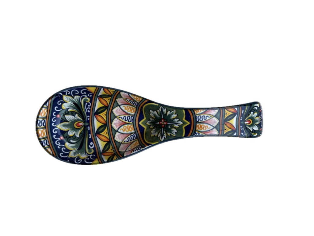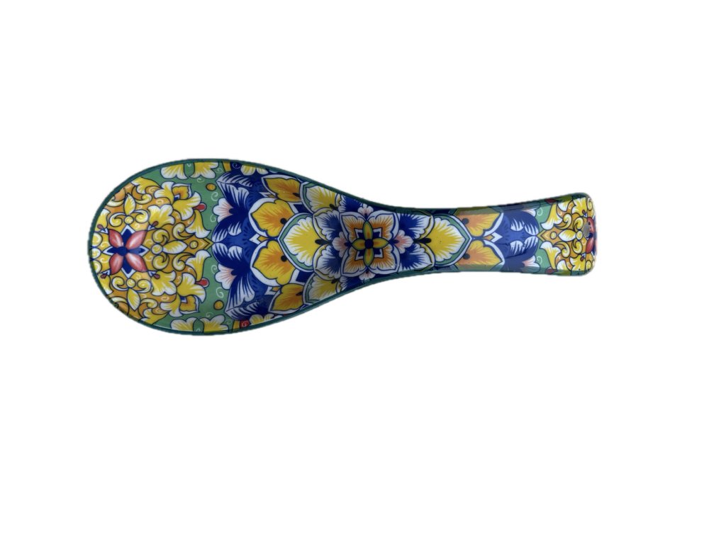Dekorativní odkládací lžíce ze španělské keramiky s ručně malovaným sicilským dekorem. Vhodná pro odkládání vařeček a dalšího kuchyňského náčiní.