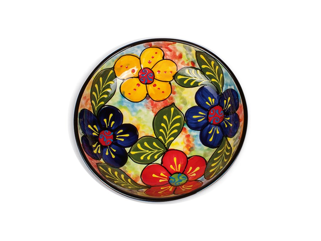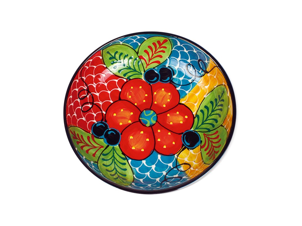Barevná a veselá salátová mísa - španělská keramika je oslavou barev a radosti. Tato velká mísa o průměru 23 cm je ručně vyráběná keramika, která se stane dominantou vašeho stolu a představuje to nejlepší z tradiční keramiky ze Španělska v moderním provedení. Díky své velikosti je ideální pro servírování salátů, ovoce či větších pokrmů.