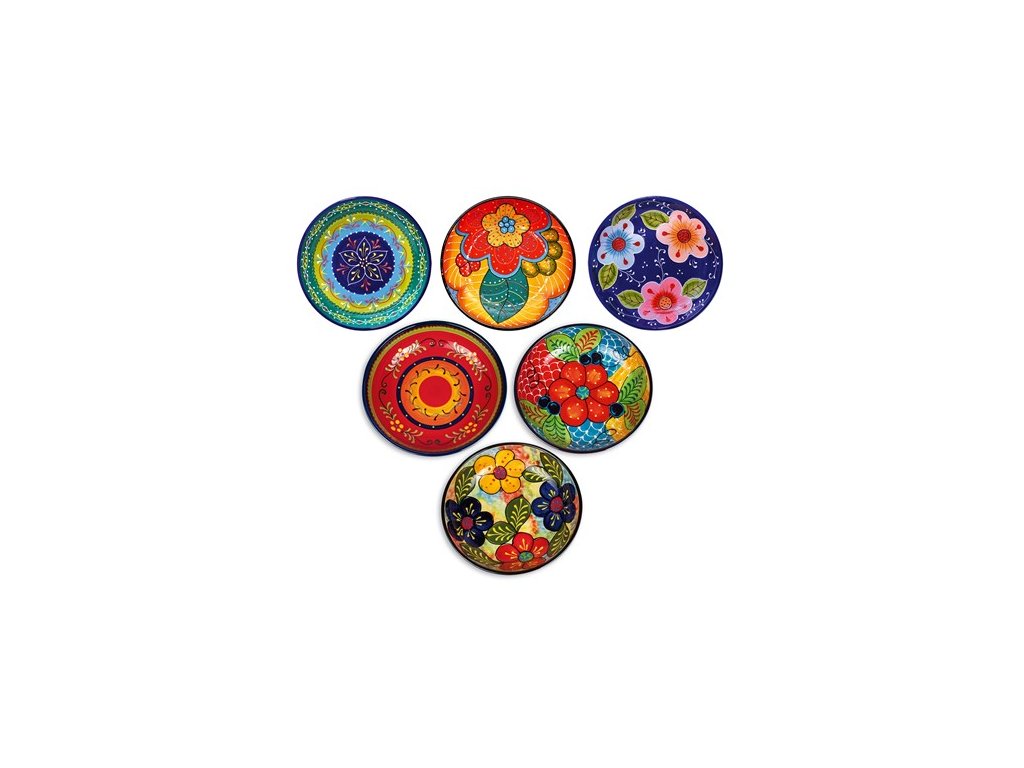 Každý kus je originální středomořská keramika, zdobená sytými odstíny modré, červené, zelené i žluté - oživý každý stůl a přinese atmosféru dovolené na jihu. Kolekce se vyznačuje plastickým reliéfním povrchem s vystouplými ornamenty, které dodávají keramice výraznou texturu a řemeslný charakter.
